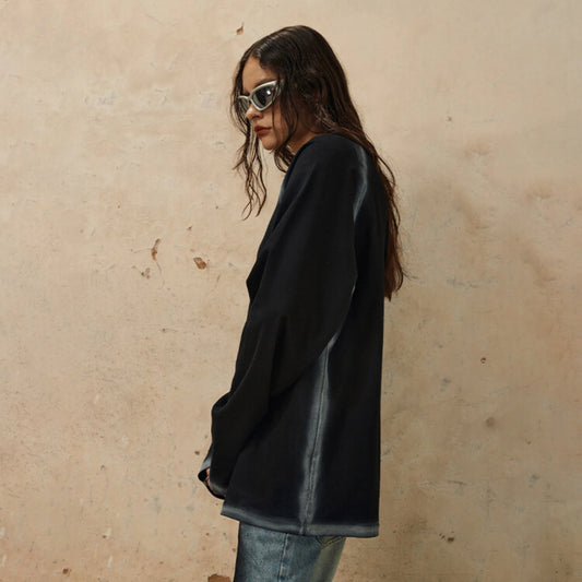 Retro Dark Long Sleeve T-shirt Hand-painted Printed Loose Round Neck Cotton Top