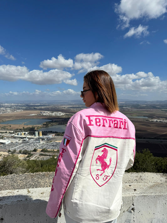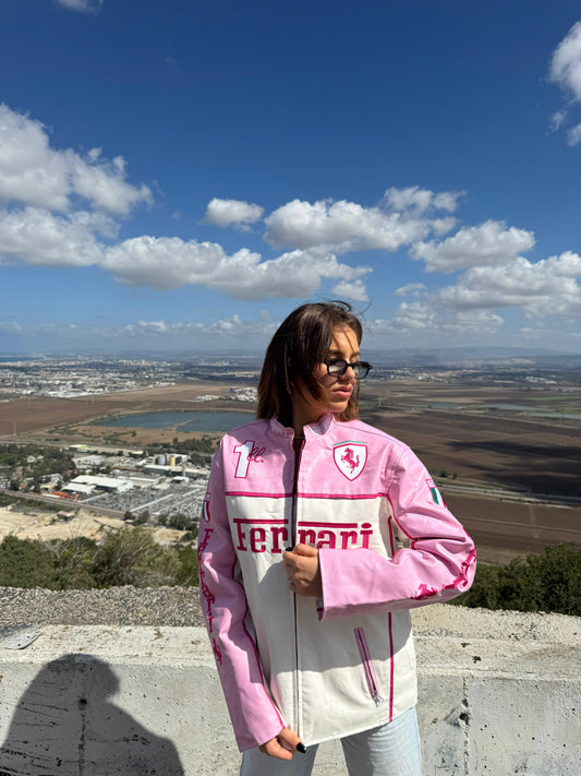 Formula1 Ferrari Pink Leather Jacket